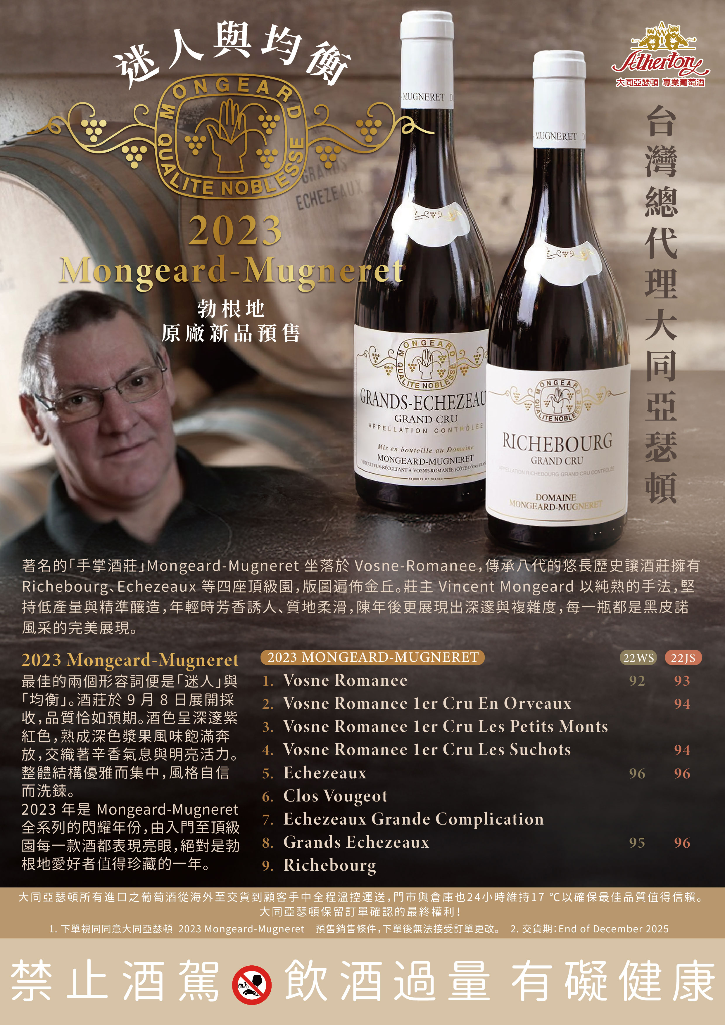 【迷人與均衡】2023 Mongeard-Mugneret 勃根地原廠預售