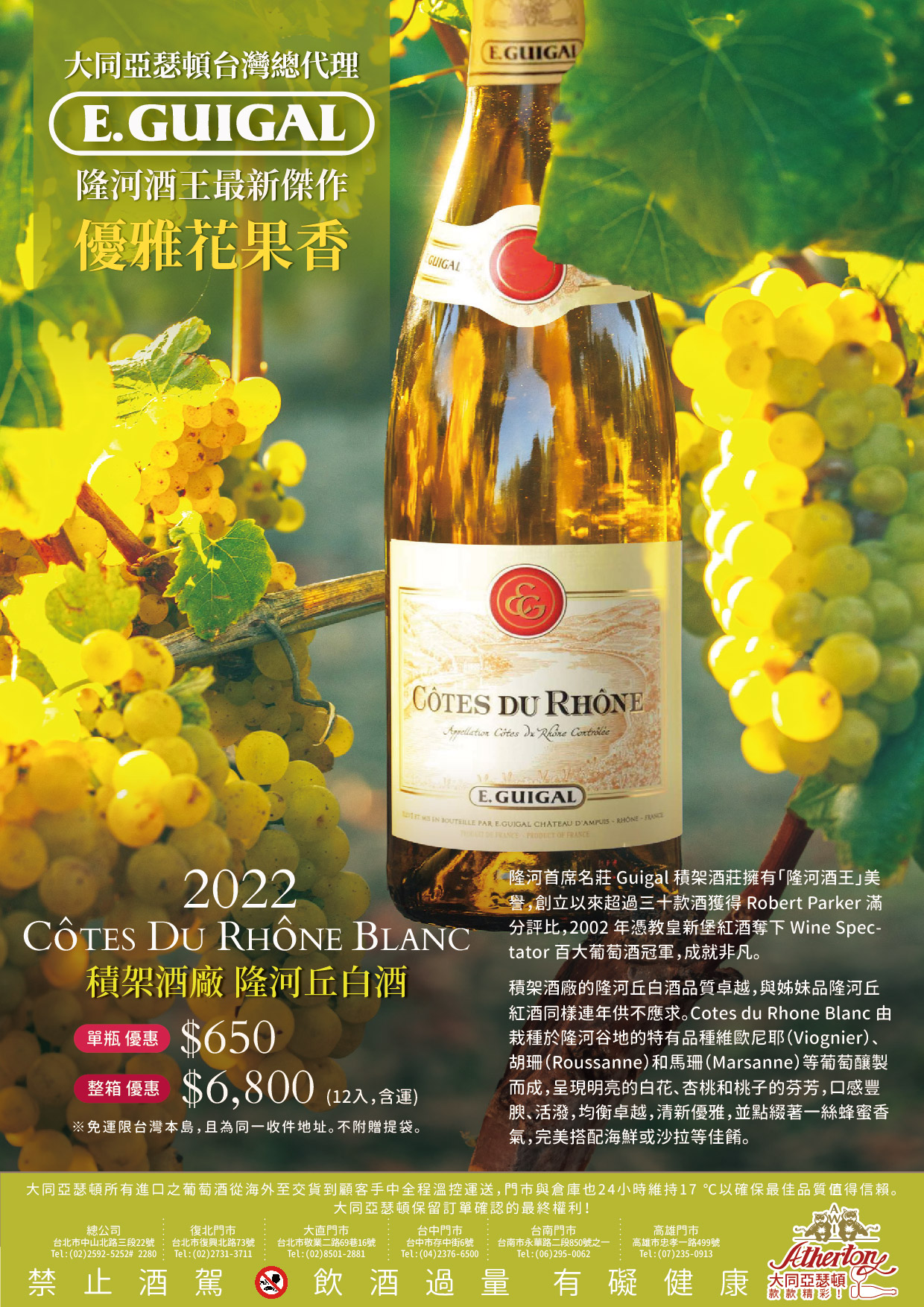 【隆河酒王.優雅花果香】 2022 Cotes du Rhone Blanc, Guigal 白酒