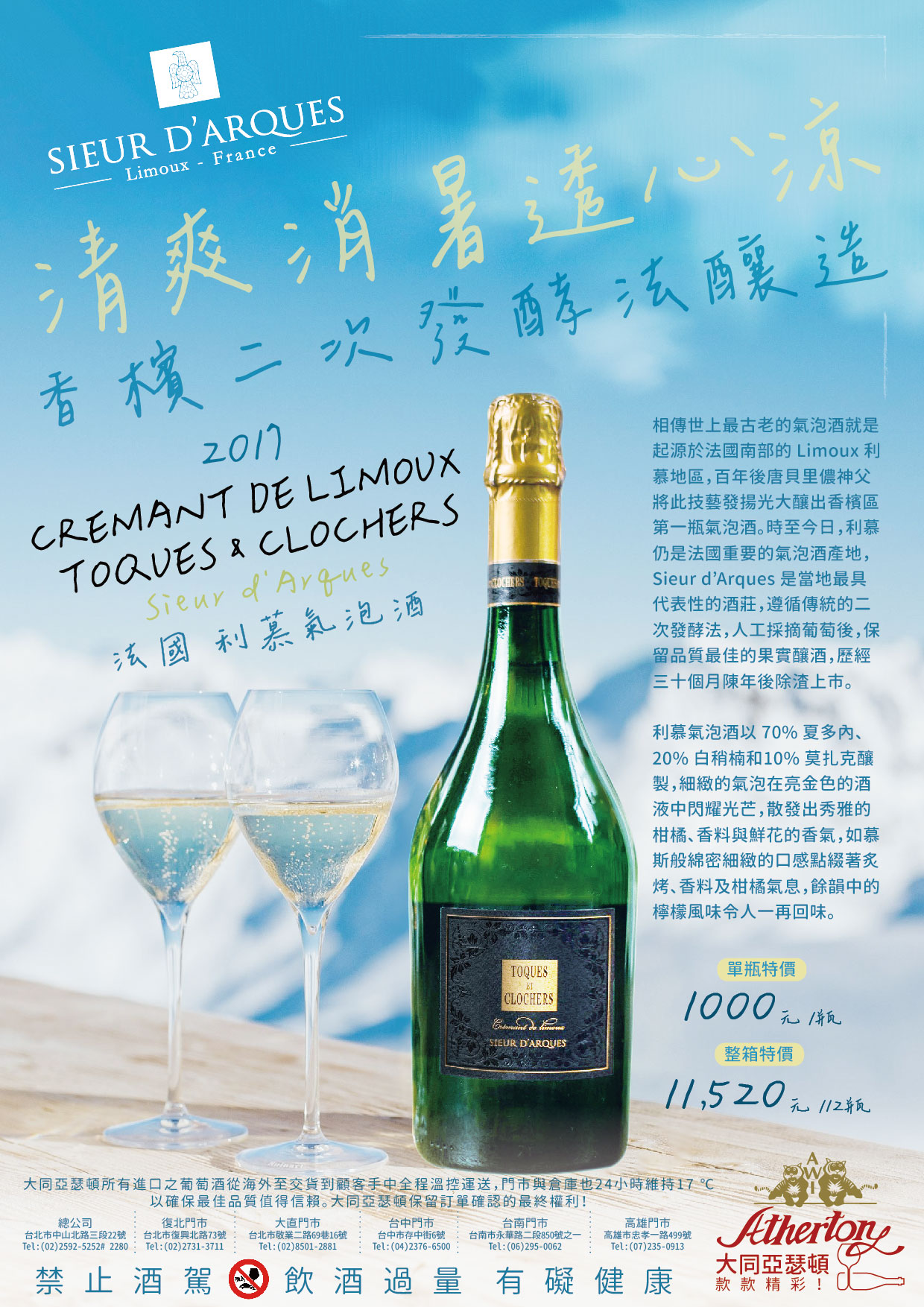 相傳世上最古老的氣泡酒就是起源於法國南部的 Limoux 利慕地區,百年後唐貝里儂神父將此技藝發揚光大釀出香檳區第一瓶氣泡酒,造就今日香檳的輝煌。時至今日,利慕仍是法國重要的氣泡酒產地,Sieur d’Arques 是當地最具代表性的酒莊,遵循傳統的二次發酵法,人工採摘葡萄後,保留品質最佳的果實釀酒,歷經三十個月陳年後除渣上市。